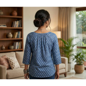 Be the first to review “Elegant Blue Printed Cotton Top for Women | 3/4 Sleeve Casual & Office Wear Kurti Top”