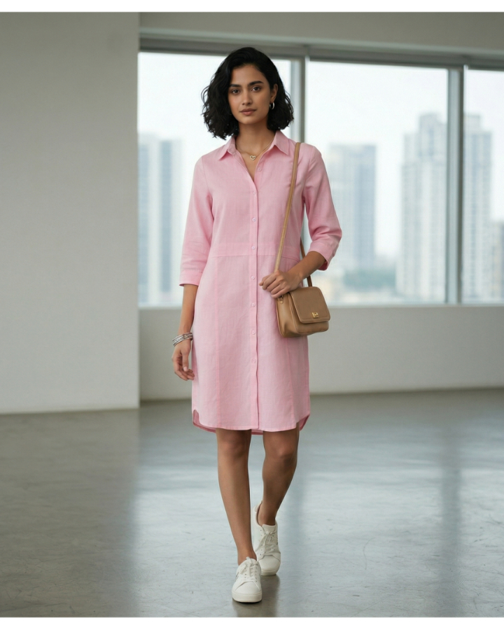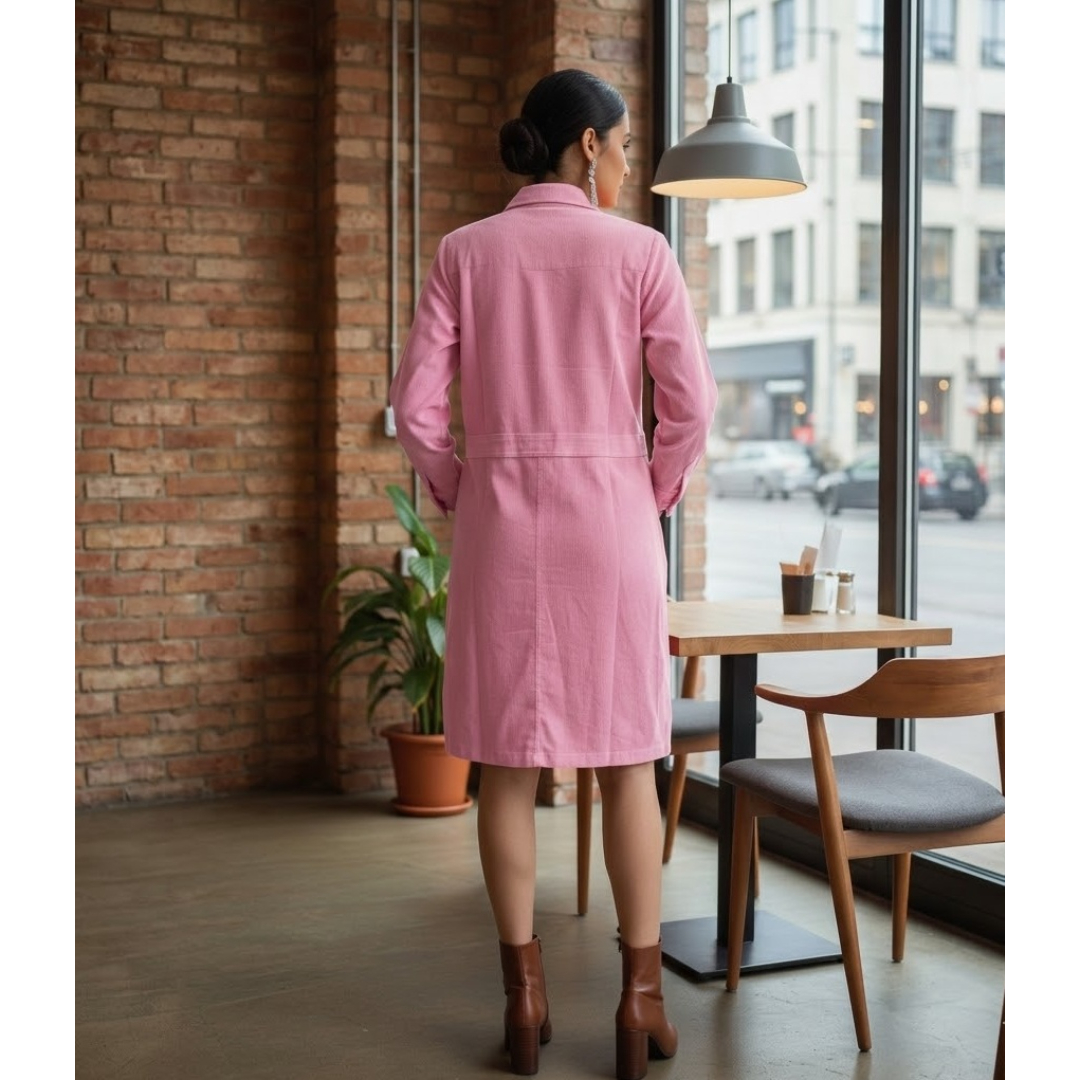 Upgrade your wardrobe with this stylish and versatile pink shirt dress, perfect for everyday elegance. Designed with a classic collared neckline and full button-down front, this dress combines comfort with timeless fashion. The soft fabric ensures all-day ease, while the tailored fit enhances your silhouette beautifully.
