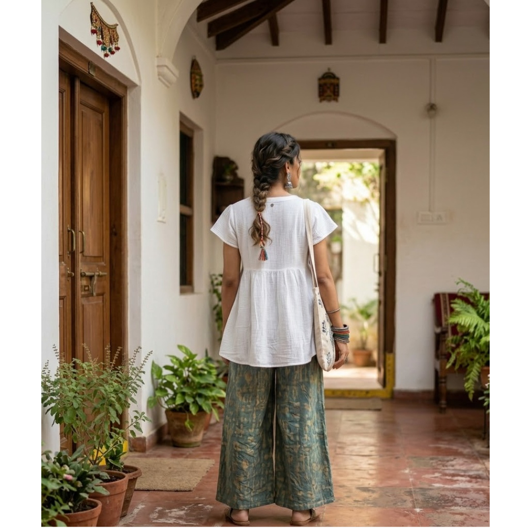 The relaxed, flowy silhouette ensures all-day comfort while giving a graceful fall. Pair it easily with jeans, trousers, or leggings for a chic and versatile look.
