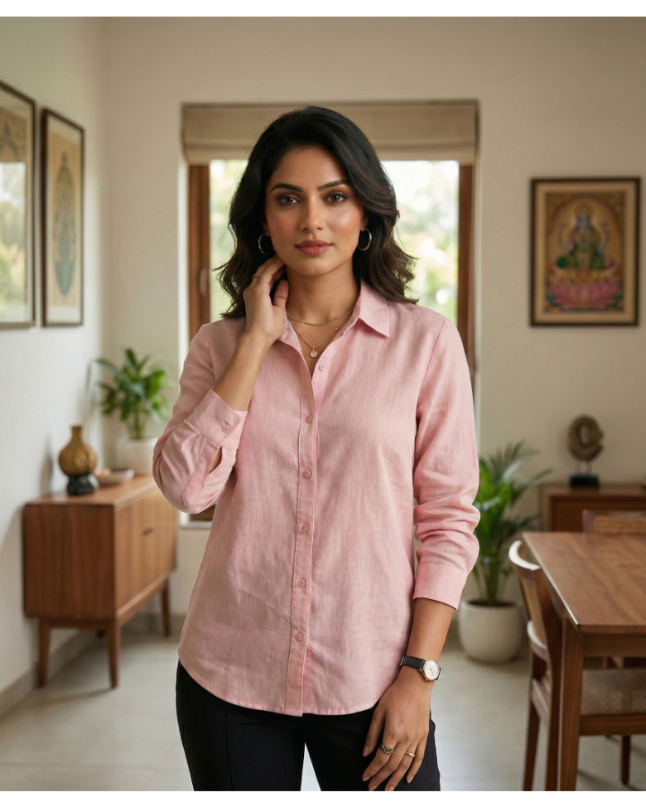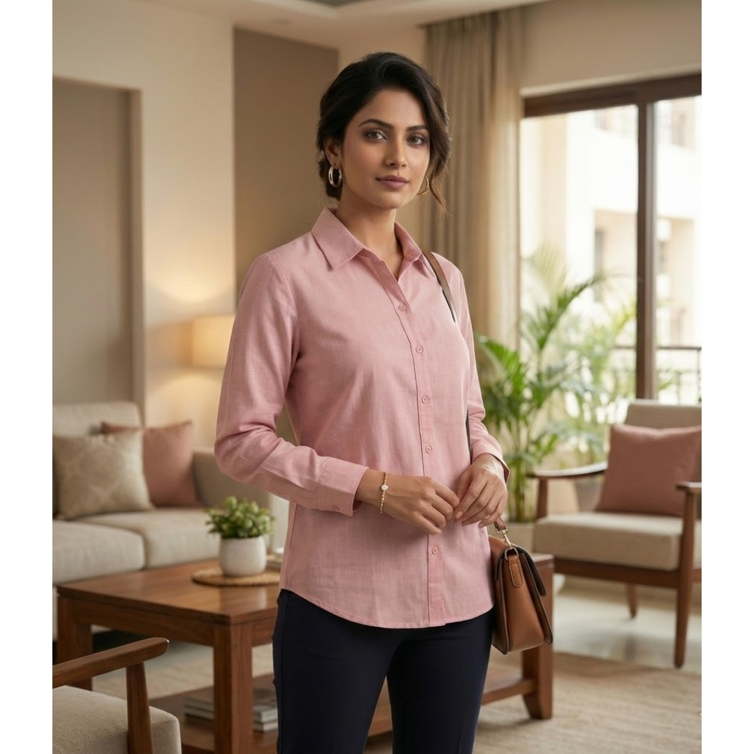 Upgrade your everyday wardrobe with this stylish and sophisticated solid pink shirt for women. Crafted from soft and breathable cotton fabric, this shirt offers all-day comfort while maintaining a polished look. The classic button-down design with a smart collar makes it perfect for office wear, business meetings, or casual outings.