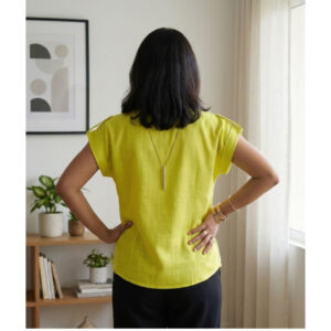 Featuring relaxed cap sleeves with button-tab detailing and a slightly loose fit, this shirt ensures easy movement and a flattering silhouette. Pair it with jeans, trousers, or skirts for a chic and versatile look.