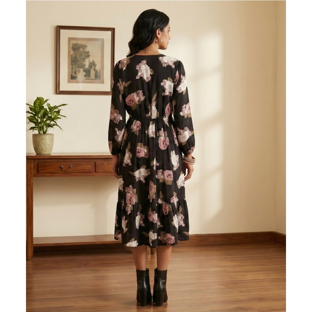 Be the first to review “Midnight Rose Garden Tiered Midi Dress”
