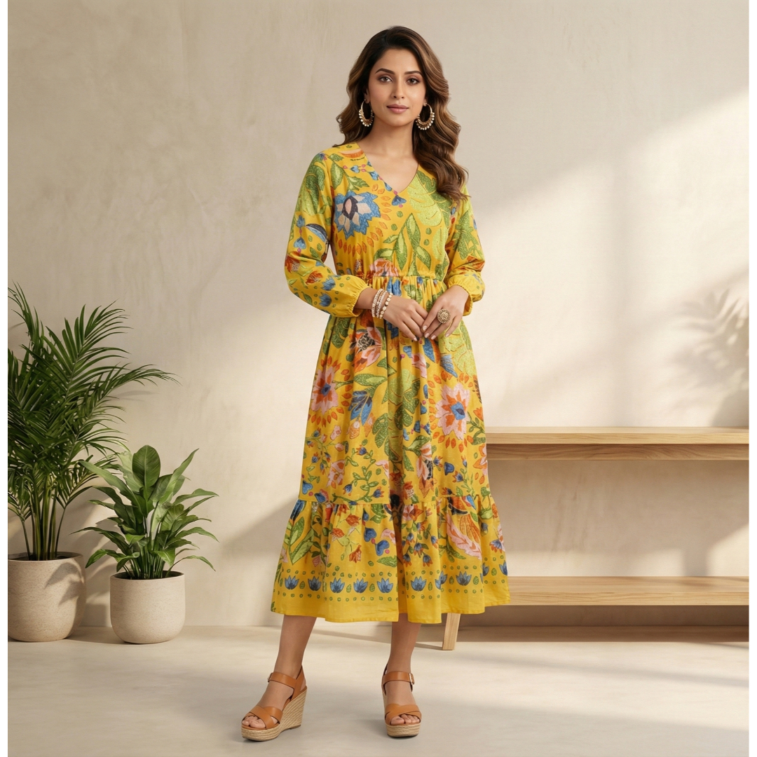 Be the first to review “Saffron Bloom Tiered Midi Dress”