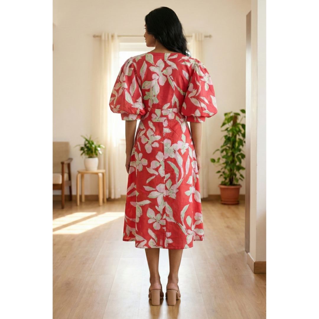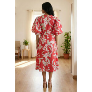 Be the first to review “The Coral Botanical Puff-Sleeve Midi”