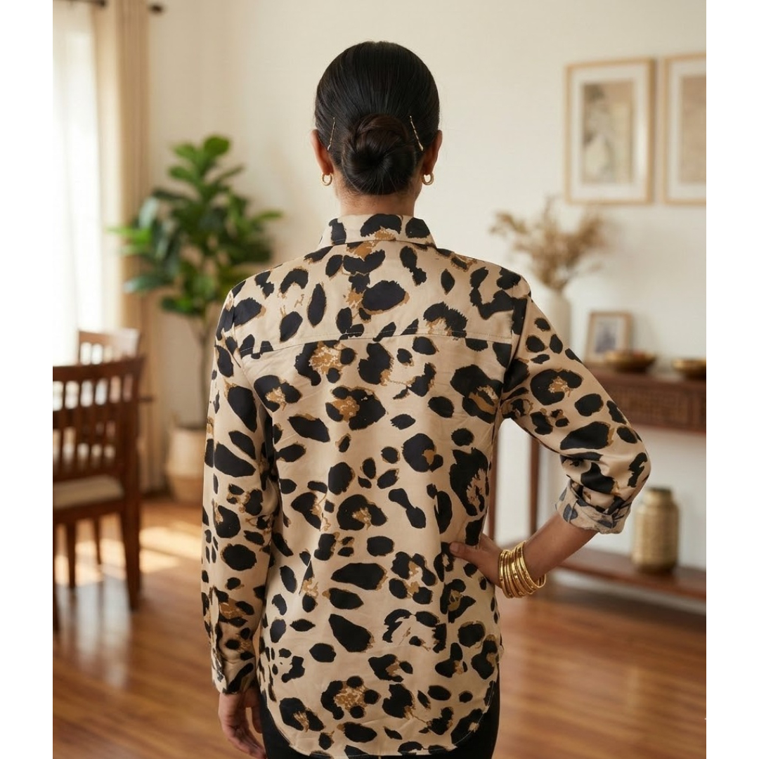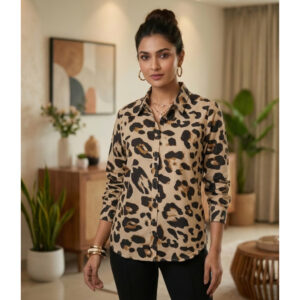 Upgrade your wardrobe with this stylish beige and black leopard print shirt for women. Designed with a classic collar and full sleeves, this button-down top offers a perfect blend of elegance and bold fashion. The soft, breathable fabric ensures all-day comfort, making it ideal for office wear, casual outings, or evening gatherings. Pair it with black trousers or jeans for a chic and confident look. A must-have statement piece for modern women who love trendy yet classy outfits.