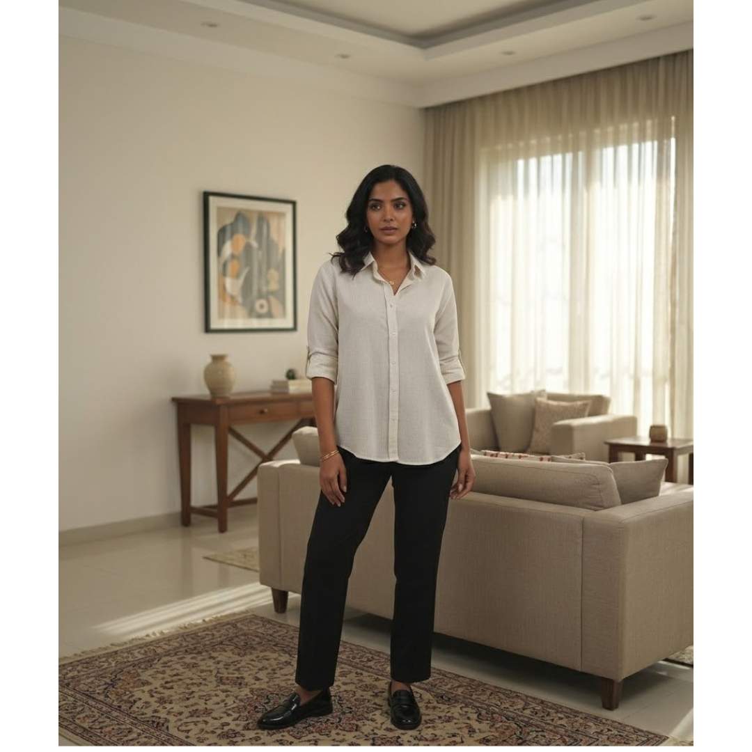 Crafted from soft and breathable fabric, it ensures all-day comfort whether you’re at work, college, or heading out for a casual outing. The full sleeves with structured cuffs provide a smart finish, making it easy to pair with jeans, trousers, or skirts.