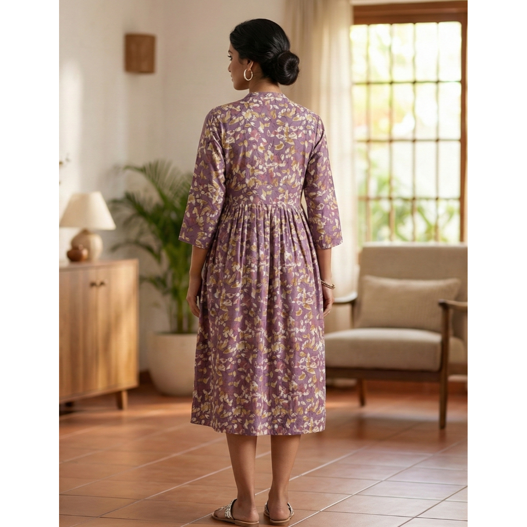Be the first to review “Women’s Mauve Floral Print Gathered Midi Dress ? Relaxed Fit”