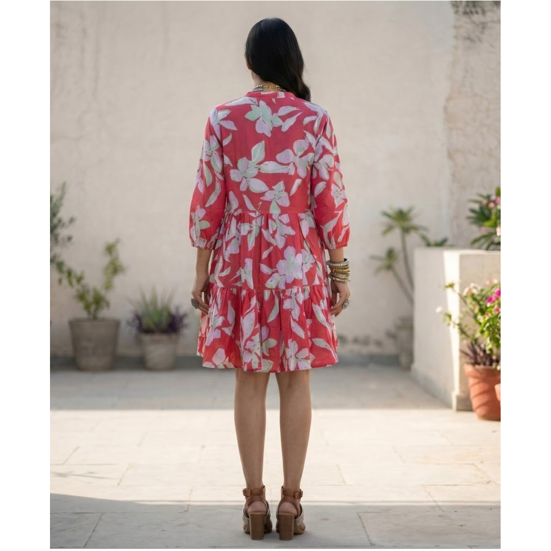 Effortless Boho Charm for Any Occasion Add a pop of color to your wardrobe with our Red Floral Tiered Mini Dress. This piece combines a bold, energetic red palette with a delicate botanical print in soft mint and white. The tiered babydoll silhouette offers a relaxed, breezy fit that is as comfortable as it is stylish.
