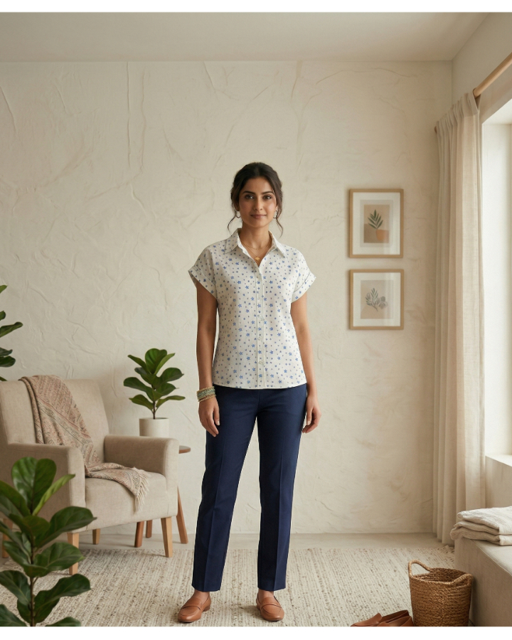 Pair it effortlessly with jeans, trousers, or skirts for a smart and stylish look. A must-have addition to your wardrobe for a fresh and playful vibe.