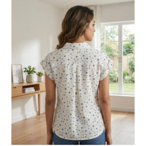 Upgrade your everyday style with this chic white shirt featuring an all-over blue star print. Designed with a classic collar and full front button closure, this short-sleeve top offers a perfect blend of comfort and trendy appeal. The lightweight fabric ensures breathable wear, making it ideal for daily outings, office wear, or casual get-togethers.