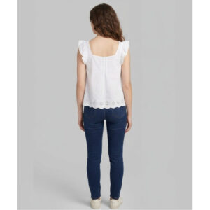 Stay effortlessly stylish with this elegant white sleeveless cotton top, designed for a fresh and feminine look. Featuring delicate lace-trimmed shoulders, soft pintuck detailing on the front, and a button-down accent, this top blends comfort with charm. The scalloped eyelet hem adds a subtle touch of sophistication, making it perfect for casual outings, summer brunches, or weekend getaways.