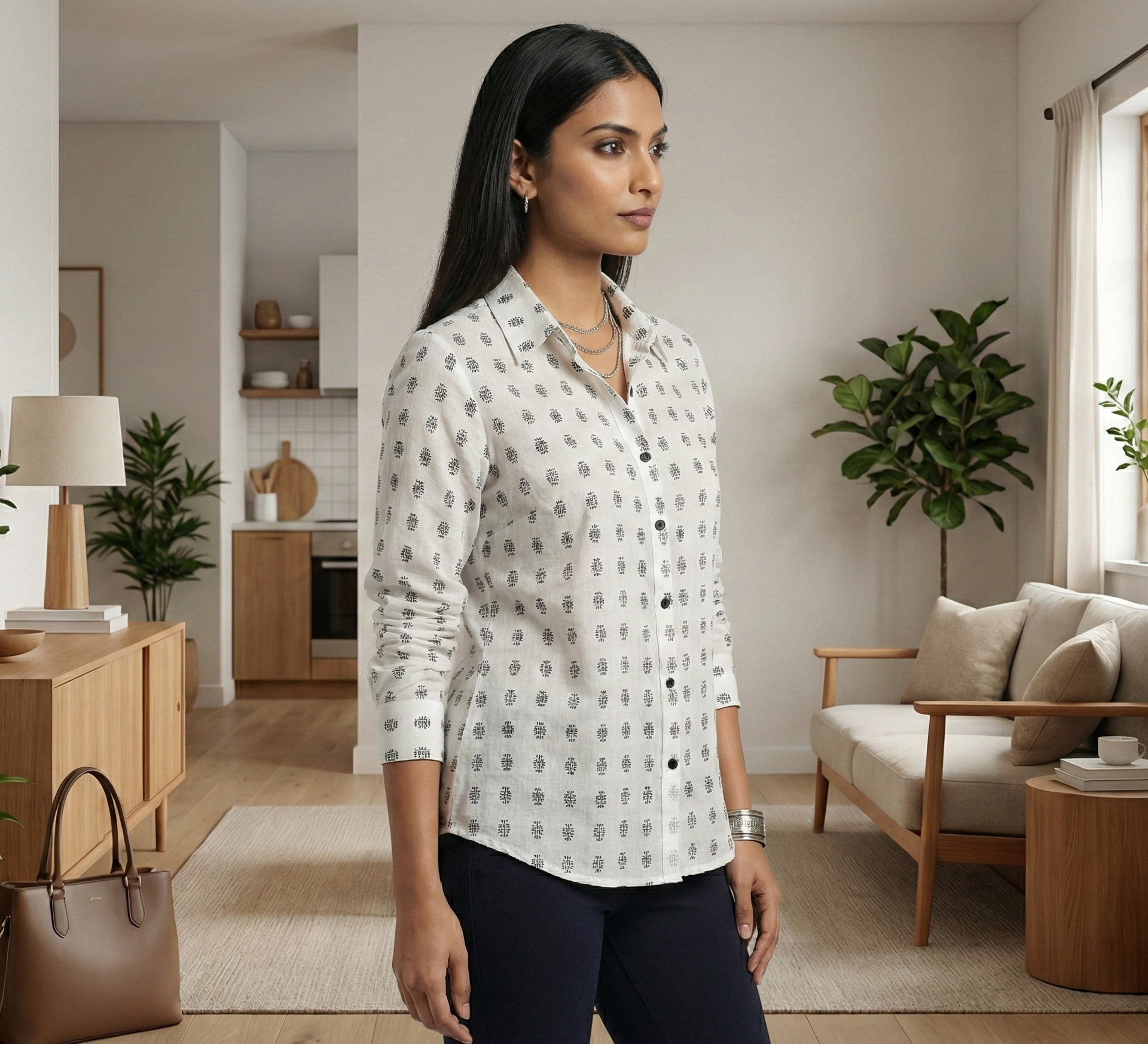 Women?s White Printed Cotton Shirt | Full Sleeve Button-Down Casual Office Wear Top