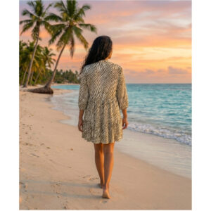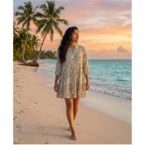 Whether you’re strolling along the shore or heading out for a brunch date, this versatile dress blends modern print with timeless comfort for a chic, carefree style.